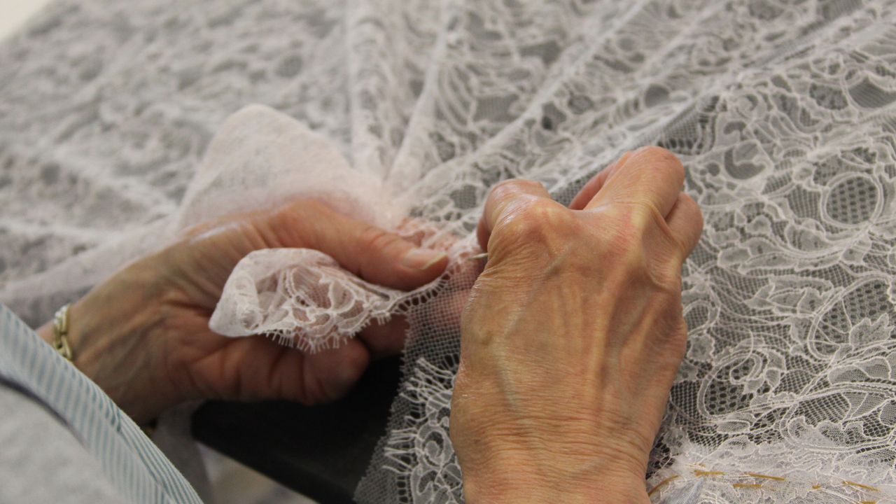 The company implements all finishing operations. It treats the know-how of preparation and weaving at the company V Machu. It has rare and complex finishing know-how: This is a time-consuming visit, i.e. control of the "trap" fallen from trades and repairs to the needle hooks and defects. Then comes fencing: the junction wires are pulled to leave only the Lace. Lace, can then be twisted with threads more or less precious (rubans, sons of gold or silver, lurex, pearls).